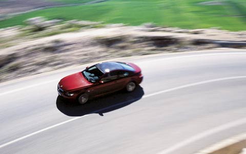 M6更具线条感的设计和轻重量部件的结合效果意味着其V10发动要也比M5所使用的减轻了约275磅。同时,M6的底盘也能够更轻易的操控和进行躲避的动作,这要归功于该车离地间隙低于其四门同胞M5近两英寸的设计。如果携带三个乘客进行Z字形驾驶M5时,想保证他们的舒适还能够实现,然而如果只有一个驾驶员和两个行李箱在山路爬行,你很可能更愿意呆在一部M6里面。