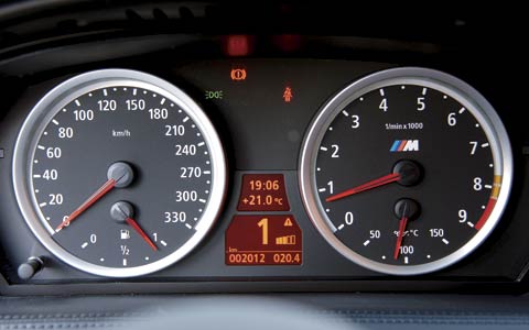 5.0升V10发动机在点火时发出的声音比M5更低沉、更引人注意。轻点电子线控油门踏板,随着40气门开始强劲的运行以及10个节气阀门在它们各自的汽缸内上下翻飞,转速表指针毫不费力的向上跳动。此外,从排气管还传出了经过调谐后令人兴奋、彭湃的声浪。如果第一次在点火时扭曲了钥匙而需要有人帮助的话也是有情可缘的。“普通”的车子不会这样,它们在怠速时发出的声音不会让你感觉到“哦不,我是不是要吃几粒防晕车药?”