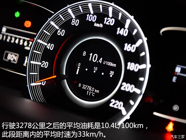 车开了三个月,这里整体公布一下三个月的油耗状况,仪表盘的B表统计3100公里的平均油耗,仪表显示这3100公里的平均油耗是10.4L/100km,整体表现能够满意。