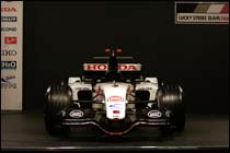 英美车队今天在西班牙的巴塞罗那正式发表2005年战车英美007,发表会结束后,首席车手巴顿立即下场进行试航。全新007赛车也有着创新的设计,它的鼻翼设计相当地特殊,而007外观上看起来也比过去来得小,也着更为一体的研发设计。此外英美车队延续去年的研发,也推出第2代的复合材质的碳纤维变速箱,而本田则因应今年的两场比赛一颗引擎的规则增强新引擎的耐用度,不过新引擎却比过去来得更轻、更小,有着更低的重心。