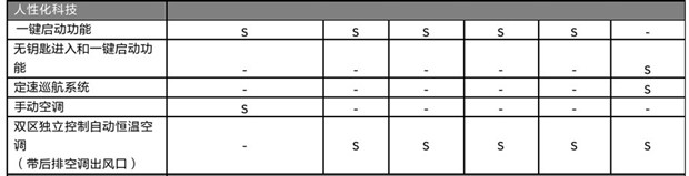 一键启动功能在观致3上全系标配,而无钥匙进入和定速巡航则只有顶配致臻型才有。此外,前排双区独立控制自动空调带后排空调出风口则除了最低配致享型之外,其余车型均有配备。