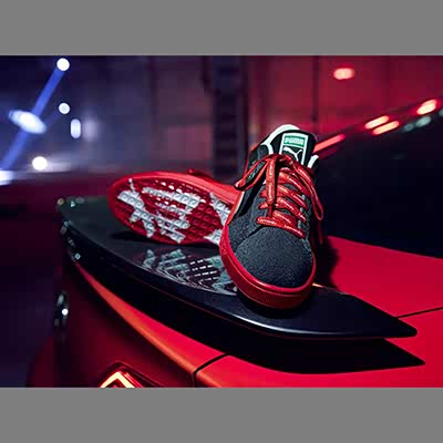 全新限量款SUEDE 0°采用与凌渡相同的红色与黑色形成撞色搭配,带来潮酷冲击力。红黑双色鞋带与鞋后侧印有Lamondo字样,与鞋侧金色与鞋舌的PUMA LOGO凸显出该车的个性化特征。