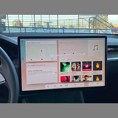 从曝光的图片来看,新款Model S车机系统的主界面采用了模块化的设计,看起来更加立体。地图模块显示的权重大幅降低,缩小成了一个相对较小的模块。同时娱乐模块的功能得到强化,占据了屏幕更大的空间。底部的功能栏也从常驻的贯通式边栏变成悬浮式的控制条,分别控制空调系统以及娱乐系统的音量。