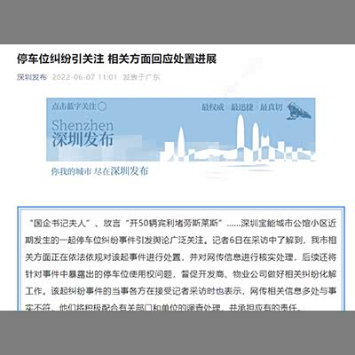 深圳发布:回应停车位纠纷处置进展