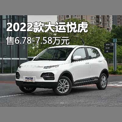 [汽车之家 新车上市] 7月8日,大运新能源旗下2022款悦虎正式上市,新车共推出3款配置车型,补贴后售价区间为6.78-7.58万元。新车定位小型纯电动SUV,新增了杨妃粉和沧浪绿两款配色,并对“三电”系统服务进行了升级,提供终身质保。