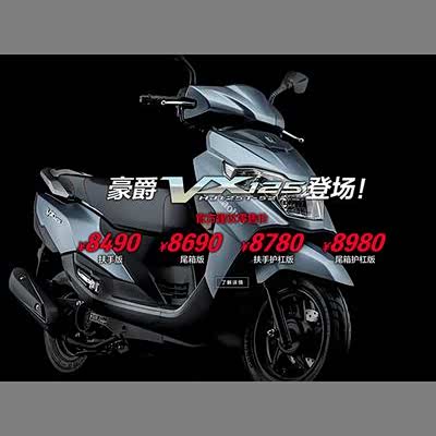 [汽车之家 资讯] 日前我们获悉,豪爵VX125踏板摩托迎来正式上市,新车共推出四款车型,售价区间为8490-8980元,车辆的售价详情如下: