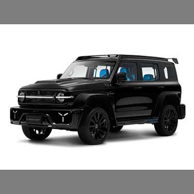 坦克300赛博骑士新车限量7000台,首批预售5000台,预售价为33-35万元。新车采用了黑化的设计理念,圆形的大灯组配合贯穿式的LED日间行车灯展现出了一些复古的味道。新车前发动机舱盖采用了一个带有进气开口造型的设计,配合前包围大尺寸三分式散热通风开口,整体搭配展现出了一定赛博风格。