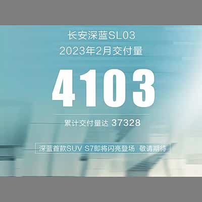 [汽车之家 资讯] 日前,我们从官方了解到,2023年2月长安深蓝SL03交付达到了4103辆,目前累计交付量达到了37328辆。