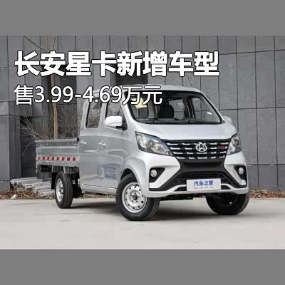 [汽车之家 新车上市] 汽车之家获悉,长安星卡新增5款新车型,还有一款车型调价。新增的五款车型售价为3.99-4.69万元,调价的双排2.26米载货汽车基本型非空调版售价变为4.29万元。