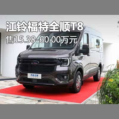 [汽车之家 新车上市] 10月15日,江铃福特全顺T8正式上市,活动期间,江铃福特还发布了6款福特全顺T8房车,它们由江铃福特携手改装合作伙伴,基于福特全顺T8“共创”而来,每一款房车独具特色,不同的配置将满足不同的场景需求。全顺T8包含客运版、物流版和纯电版,共推出近百款配置车型,售价区间15.38-60.00万元;其中物流版起售价15.38万起,纯电版19.98万起,客运版22.38万起;房车系列的越界露营大师版29.80万起,越界四驱越野版60.00万起,卫航商旅公务版58.80万起,江旅四季全能版54.80万起,宇通四海畅享版58.80万起,瑞弗五星尊享版59.80万起。作为换代产品,整体产品力进行了大幅提升,包括将采用双前脸设计,配备双联屏等等。