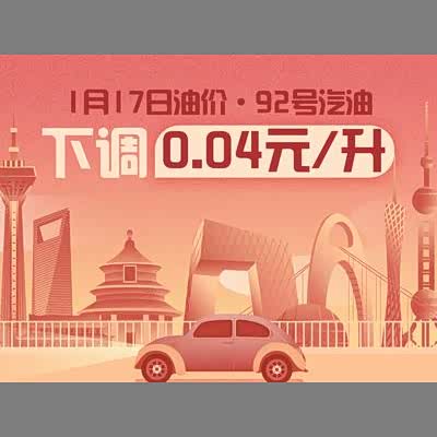 1月17日24时:92号汽油下调0.04元/升