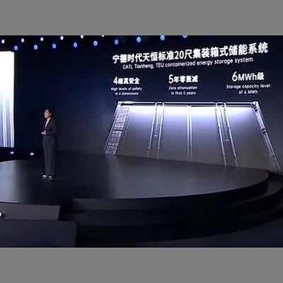 宁德时代许金梅在发布会中介绍,宁德时代的全新储能产品为标准20尺集装箱式储能系统。储能系统能够实现首五年容量零衰减,首5年功率零衰减。产品锂电池寿命不再跳水,实现15000次实验室循环。