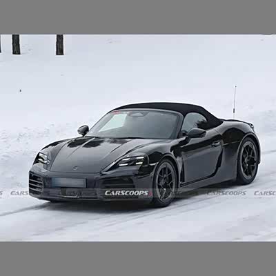 根据此前曝光的谍照来看,纯电动版保时捷718 Boxster整体造型看起来像一台短轴距的Taycan软顶敞篷版,尤其是前大灯组的造型,与Taycan的设计风格十分类似。新车的车顶线条衔接到尾部后呈现快背式造型,除了黑色的车身外,轮圈也采用了黑化处理。