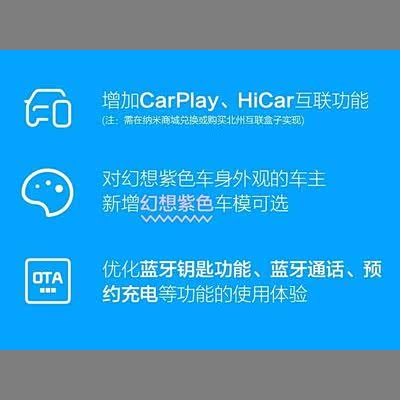 [汽车之家 资讯] 日前,东风纳米01开启OTA升级,本次升级车机系统新增了CarPlay和HiCar互联功能,幻想紫色车型车机系统新增幻想紫车模可选,此外还优化了蓝牙钥匙功能、蓝牙通话、预约充电等功能的使用体验。