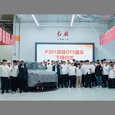 [汽车之家 资讯] 近日,红旗品牌5系产品线重磅产品P301项目首台验证样车在研发总院试制部成功试制下线。同时该验证样车仅历时15天便完成首台OTS整车下线并成功打火,成为红旗品牌历史上首台OTS下线速度最快的车型。据悉,红旗P301是一台插电混合动力豪华中型SUV,基于红旗·鸿鹄混动平台HMP打造,预计2026年5月正式投产。
