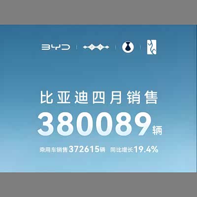 同比增长21.3% 比亚迪集团4月份销售380089辆