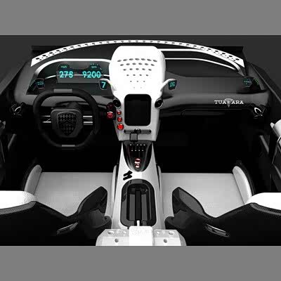 据国外媒体介绍,SSC Tuatara的内饰设计与其车身外观内外呼应,设计理念超前且时尚,并采用了函数式的设计语言。车内配有的是数码仪表盘,其功能与HUD(抬头显示屏)相似。此外,中控台配有特大尺寸的显示屏,配有的红色按键极具视觉冲击力。