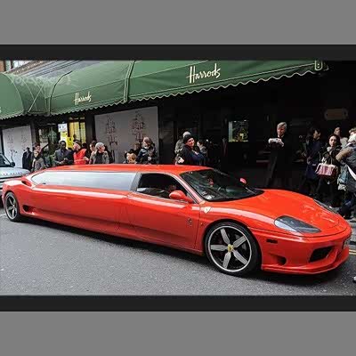 [汽车之家 资讯]近日在英国伦敦哈罗斯百货公司门口,一辆可容纳8人的加长版法拉利360 Modena受到众多路人围观拍照,该车是由两位英国男子向当地租赁公司租借,目的可能是想在圣诞节期间购买更多的礼物,同时借此赚足眼球。