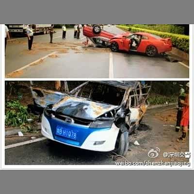 根据2012年5月28日晚深圳交警部门发布的通告, 2012年5月26日淩晨3时许,车牌号为粤BH1Q78的比亚迪e6电动出租车在正常行驶中,被后方速度不低于180Km/h的豪华跑车从左后部剧烈撞击,导致车辆失控,从第二车道加速旋转漂移至第五车道后,跃上绿化带,尾部甩动剧烈撞击到大树上,车尾撞成巨大的树形凹坑,经过多次碰撞并旋转,车体严重变形,后起火。