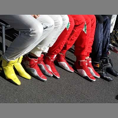 就像跳舞穿舞鞋,踢足球穿足球鞋,打篮球穿篮球鞋一样,开赛车需要穿赛车鞋。与普通运动鞋相比,赛车鞋最大的不同是可以防火而且更能防滑。目前,通过国际汽联认证的赛车鞋品牌多达43家,而在当今的F1赛场中,车手们选择的专业赛车鞋主要来自彪马、锐步、Sparco、OMP、Alpinestars、GEOX等品牌。比赛之余,车手们也会选择诸如耐克、asics、New balance等品牌的训练鞋。对于车迷来说,法拉利、红牛和迈凯轮车队还有纪念版鞋子出售。