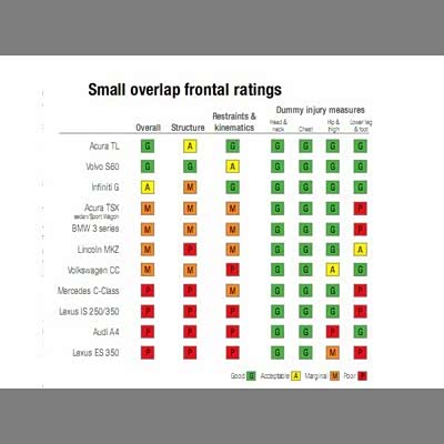 | IIHS发布的小重叠面碰撞测试成绩 | |