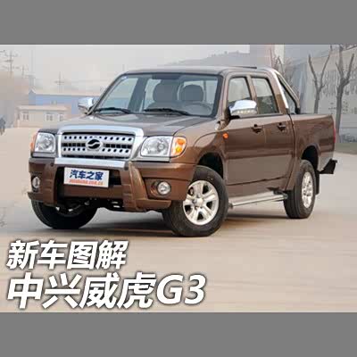 [汽车之家 新车图解] 中兴汽车是国内具有较完全自主知识产权及整车研发能力的现代化皮卡、SUV生产企业之一,它的前身始建于1949年,是中国人民解放军某部军械修理所,其皮卡车型主要有威虎、旗舰A9和昌陵。其中最具竞争力的产品莫过于威虎系列,包含威虎G3、威虎F1、威虎海外版三种款式。今天我们就来介绍一下威虎G3。