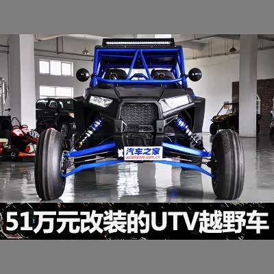 [汽车之家 改装图赏] UTV是英文Utility-Terrain Vehicle的缩写,意思是全地形越野车。这是ATV车型的一个分支,一种通过性、灵活性都要超过SUV的车辆。其最初设计目的是为了快速通过复杂的地形,在普通车辆无法行驶的路面上快速通勤。后来,UTV逐渐从交通工具演变成了一种娱乐项目、一项极限运动。本期我们就来介绍一辆运动型的UTV,这辆UTV经过重金改装,单纯改装费用就用了大约51万元。这究竟能改出怎样一辆车呢?让我们一起来看一看吧。