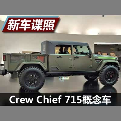 [汽车之家 海外谍照] 日前,有海外媒体曝光了一组Jeep Crew Chief 715概念车的实车图。新车采用了皮卡式的车身设计,并配备有软顶敞篷式的车顶结构。据悉,该车将于3月19日开幕的Moab Easter Jeep Safari越野大会正式亮相。