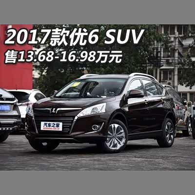 [汽车之家 新车上市] 日前我们从官方获悉,东风裕隆推出了纳智捷2017款优6 SUV,新车主要针对1.8T的三款车型魅力升级型、时尚升级型、智尊型进行配置升级,而价格不变,售价区间仍为13.68-16.98万元。除此之外此前在售的三款车型配置价格均不变,仍然销售。目前优6 SUV的全系售价仍为10.98-20.08万元。