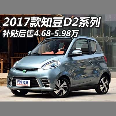 [汽车之家 新车上市] 日前,知豆电动车官方宣布,2017款知豆D2系列车型正式上市。新车共包含三款车型,分别为知豆D2乐享版、知豆D2智享版以及知豆D2S,官方指导售价区间为15.18-18.88万元。参照目前的新能源汽车政策,这款车在享受国家补贴、地方补贴和厂家补贴后,终端售价为4.68-5.98万元,详见下表: