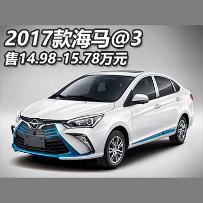 [汽车之家 新车上市] 日前我们从官方获悉,2017款海马@3正式上市销售。新车共推出舒适版和豪华版共2款车型,其补贴前指导价区间为14.98-15.78万元,补贴后售价区间为9.58-10.38万元(以北京为例)。据悉,这款车可以看做是海马M3的纯电动版,关于该车的详细售价,请详见下表: