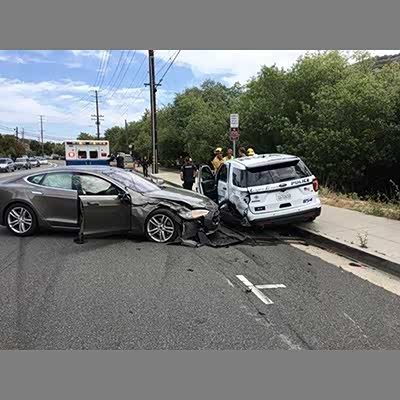 [汽车之家 新闻] 据外媒报道,近日在美国加州拉古纳海滩,一辆开启了Autopilot(自动辅助驾驶系统)的特斯拉Model S撞上了一辆路边停靠的巡警车。好在当时停着的巡警车内并没有警员,而驾驶特斯拉的司机则受了轻伤,并将把事故责任怪在“特斯拉自动驾驶”的头上。这也成为今年以来,特斯拉在美国的第三起“自动辅助驾驶功能开启下”发生的车祸。