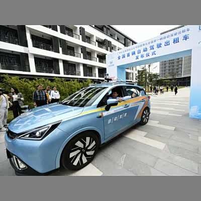中国内地首辆无人驾驶出租车在广州上路
