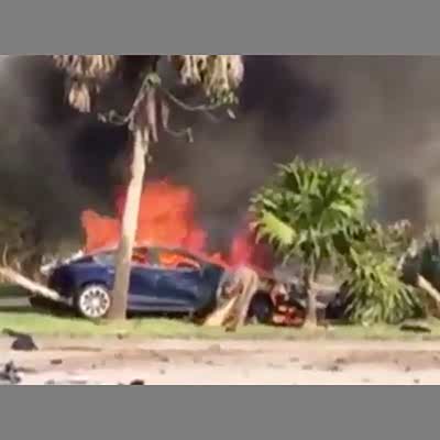 [汽车之家 新闻] 据外媒报道,近日在美国弗罗里达州一辆2016款特斯拉Model S电动车因高速行驶失去控制而撞向路边的棕榈树,导致车身起火车主丧命。救援人员以及现场目击者在事后接受对话时,均表示事故发生时已无法解救司机。