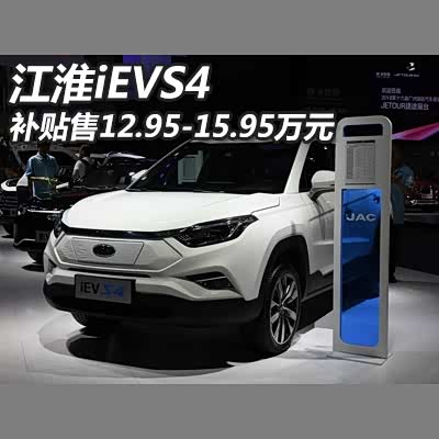 [汽车之家 新车上市] 2019上海车展期间开幕首日,江淮iEVS4正式上市,新车共推出4个配置,补贴后的售价区间为12.95-15.95万元。该车定位纯电动小型SUV,搭载一台最大功率为150Ps(110kW)的驱动电机,NEDC工况选的续航里程为355-470km。