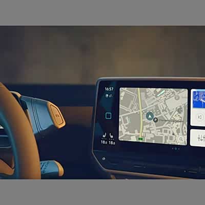 通过预告片视频,大众汽车展示了ID.3的仪表盘、方向盘局部细节,同时展示了中控屏全貌。通过截图可以看到ID.3全液晶仪表盘的设计似乎比较简洁,当前时速、剩余电量、剩余续航里程一目了然;而更吸引眼球的是,ID.3的电子挡把与仪表盘连为一体,通过转动端部即可实现换挡,同时用户在仪表盘右侧也可看到当前挡位。