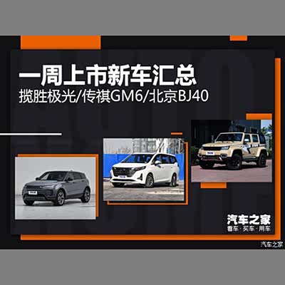 [汽车之家 新闻] 大家好,又到了上市新车汇总时间,本周上市的新车包含有全新揽胜极光、广汽传祺GM6国六版、新款北京BJ40等,这里面是否有您心仪的车型呢?我们走进正文吧!
