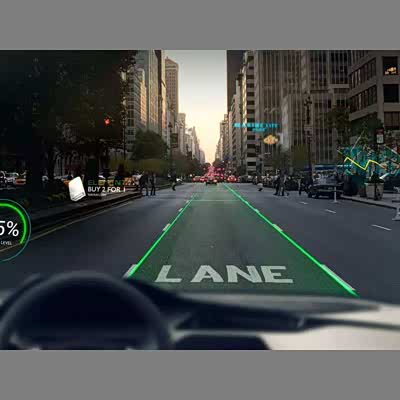 AR导航设备能够显示的道路信息基本与传统导航一样丰富,包括沿线道路、道路的地理位置、车道位置、转弯信息等等。而叠加的导航层则可以屏蔽额外的信息,如汽车不会去行驶区域(人行道、路沿等)。这样的好处在于方便用户清楚了解自己所在位置。