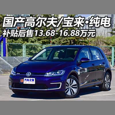 [汽车之家 新车上市] 10月29日,一汽-大众宣布国产高尔夫·纯电(e-Golf)、宝来·纯电(e-Bora)车型正式上市。两款新车分别基于MQB平台的高尔夫7和全新宝来车型打造,且采用了相同的纯电动动力系统,最大功率136马力,NEDC续航为270km。售价方面,高尔夫·纯电和宝来·纯电各推出2款车型,综合补贴后售价区间分别为14.77-16.88万元和13.68-14.68万元,详见下表。