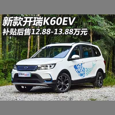 [汽车之家 新车上市] 日前,我们从官方获悉,新款开瑞K60EV正式上市,依旧推出2款车型,补贴后指导价格区间为12.88-13.88万元,补贴前指导价格区间为19.88-20.88万元。详情见下表: