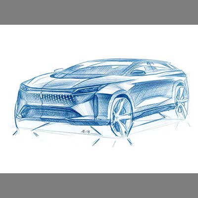 在此次曝光的设计图可以看到,新车采用了全新的设计理念,前脸的整体十分运动,其使用了官方所称的内凹式设计,细节上采用了雨滴样式的造型。新车前脸预计与其他纯电动车型一样,采用封闭设计。同时,两侧狭长的车灯与前进气格栅平齐加上由两侧往中部逐渐扩散的“小孔” ,使新车具有相当高的辨识度。