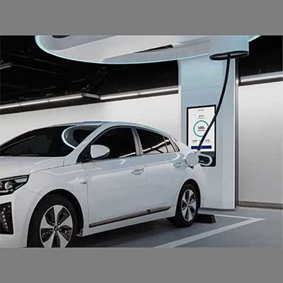 从现代发布的图片上看,该充电桩带有顶棚和LED显示屏,充电线缆被收到了上方的顶棚里。充电时,充电线缆可以自动旋转到合适的位置并伸出电线,该超级充电站充电功率为350kW。这种充电器可将充电线安装在顶棚,平时没有电动车充电时可以当作普通车位使用。