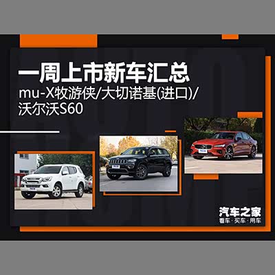 [汽车之家 新闻] 大家好,又到了上市新车汇总时间,近两周上市的新车包含有mu-X牧游侠新增车型、新款大切诺基(进口)、全新一代沃尔沃S60等,这里面是否有您心仪的车型呢?我们走进正文吧!