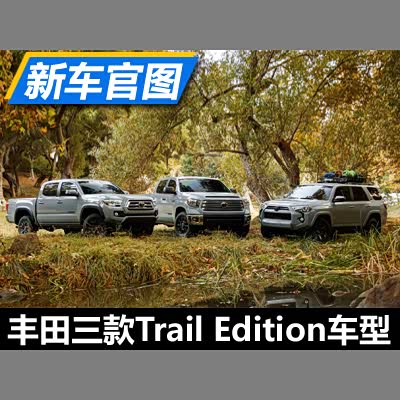 三款Trail Edition均基于Tacoma/坦途/4Runner的SR5车型打造,主打户外风格。在SR5基础上,新车型提供军绿/水泥灰/午夜黑/超级白四种车漆,搭配黑色车身标识。