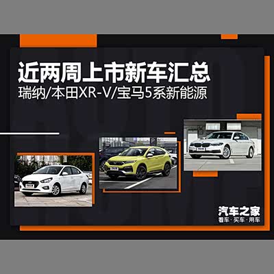 [汽车之家 新闻] 大家好,又到了上市新车汇总时间,近两周上市的新车包含有新款瑞纳、新款本田XR-V、新款宝马5系新能源等,这里面是否有您心仪的车型呢?我们走进正文吧!