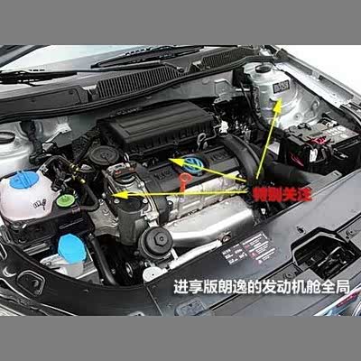据商家介绍,这次推出的进享版1.6L朗逸车型数量不多,大概每家店有20台-25台的现车,颜色以银色和灰色为主。全国范围内目前约有7000台的数量。进享版车型的1.6L发动机与以往的朗逸车型1.6L发动机是不同的型号。通过对比机舱内的铭牌可以看出,2010年1月生产的朗逸1.6L发动机型号为CDE;而到了2月生产的进享版车型的发动机型号为CFN。虽然标注的发动机功率都为77kW(105马力)。但是从发动机的细节上,我们可以看到型号为CFN的发动机与众不同之处。