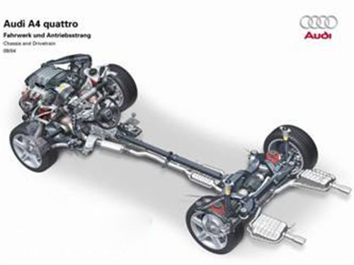 上一篇文章笔者已经介绍过了新A4的发动机和变速箱系统,好的动力有好的变速箱来传递,这些动力应该有好的底盘用来驱动汽车。这就是本篇要说到quattro全时四驱系统以及动态悬挂底盘系统。