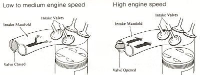丰田在80年代中期提出了T-VIS(Toyota Variable Intake System)的概念。T-VIS提高了低转速时的燃油混合效率。其原理很简单,在其中一个进气歧管安装了一个节气阀。在4650rpm以下时,节气阀是关闭的,此时相当于2气阀的发动机,当转速超过4650rpm时,节气阀打开,此时相当于4气阀发动机。