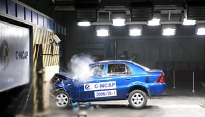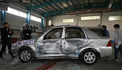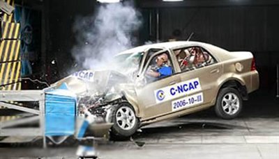 2006年12月13日,在中国汽车技术研究中心的碰撞试验室内,完成了吉利自由舰轿车的100%正面碰撞和可变形移动壁障侧面碰撞试验。虽然厂家宣称此次碰撞测试非常成功,达到了各项安全技术指标但笔者通过碰撞图片分析,有一些疑义。