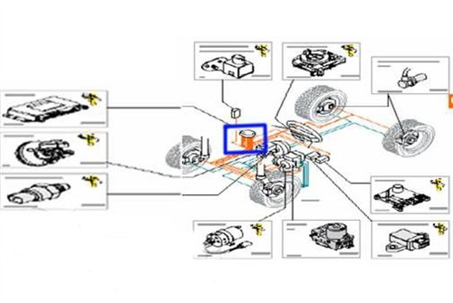 通过示意图可以看出,位于发动机后方的电子稳定程序控制单元向外输出了4条信号(橘黄色线),分别通向位于车轮上的4个制动压力传感器,形成对每个车轮的独立控制。这一事实完全可以推翻论坛中关于速腾电子稳定程序是对角线分布的两通道配置的说法。独立的4通道电子稳定程序能够提供很好的安全保障,对于一汽大众速腾这款A级车来讲还是很超值的。